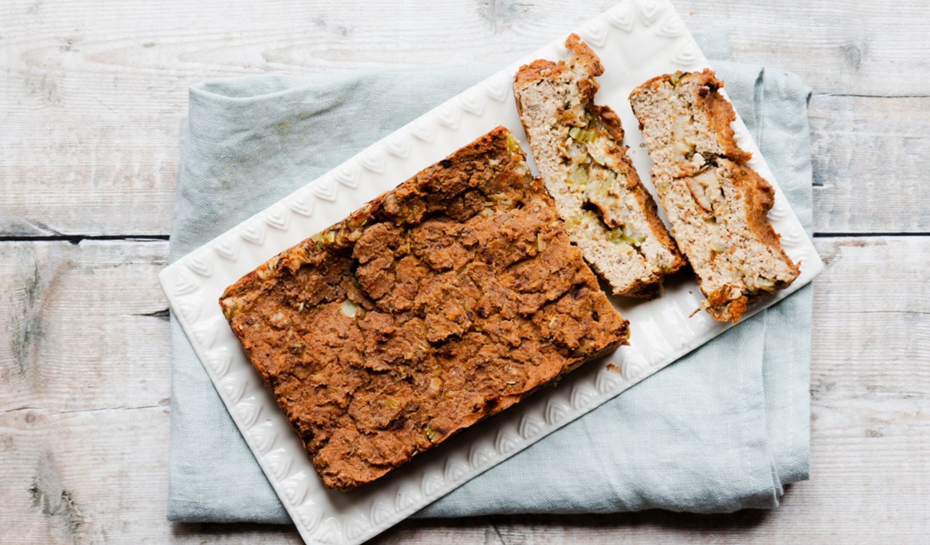 Impress your guests with a savory chickpea-based “loin,” stuffed with a sweet, nutty fruit filling and finished with a smoky chili glaze.