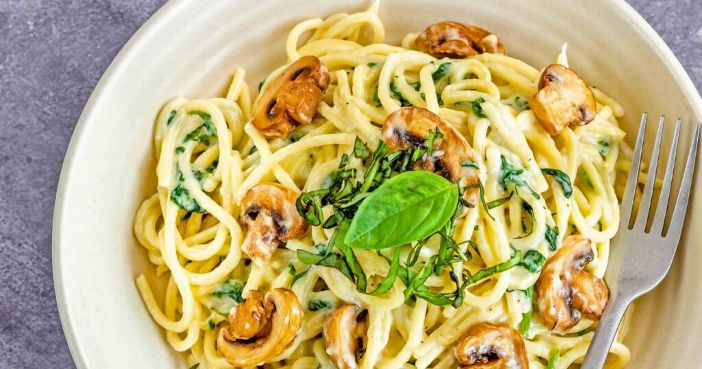 Earthy mushrooms, sautéed leeks, and a rich, creamy sauce make this pasta one of the most indulgent recipes on this list. This savory carbonara is best finished with fresh spring basil and a generous crack of black pepper.