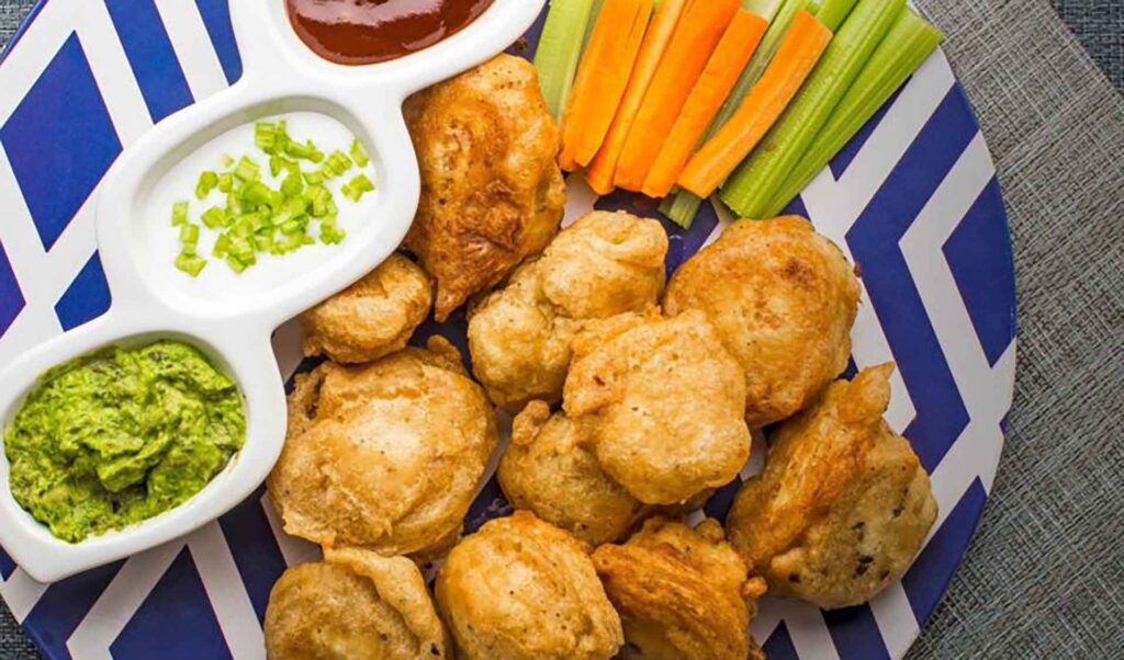Dip them in a soy–cumin batter, coat with finely chopped coconut, and fry until golden. Serve hot with vegan ranch, BBQ sauce, or your go-to dip of choice.